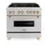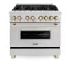 ZLINE - Autograph 36 in. Legacy Dual Fuel Range in Satin Steel & Gold Accents (RASZ-SN-36-G) - Stainless Steel