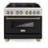 Luxury isn’t meant to be left desired — it’s meant to be attainable. The ZLINE Autograph Edition 36 in. 4.6 cu. ft. Legacy Dual Fuel Range with 6 Burner Gas Cooktop and Electric Convection Oven in Satin Stainless Steel with Black Matte Door and Champagne Bronze Accents (RASZ-BLM-36-CB) pairs a powerful gas cooktop with 6 Italian-crafted burners, an electric convection oven, a beautiful black matte door with a Landscape window design, and elegant champagne bronze knobs and handle. With innovative features designed to enhance your kitchen’s capability, ZLINE Legacy Dual Fuel Ranges provide a professional culinary experience by pairing unmatched performance with timeless style.