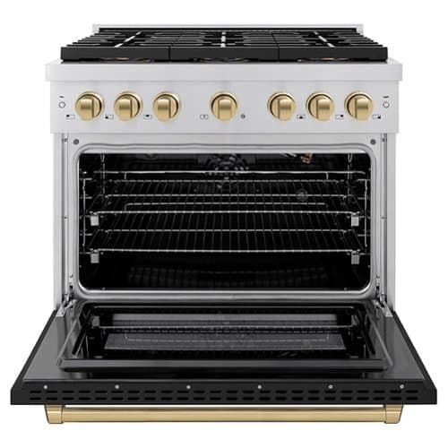 Luxury isn’t meant to be left desired—it’s meant to be attainable. The ZLINE Autograph Edition 36 in. 5.2 cu. ft. Paramount Dual Fuel Range with 6 Burner DuoPro™ Cooktop and Electric Convection Oven with Black Matte Door and Champagne Bronze Accents (PSDRZ-BLM-36-CB) features a high-powered gas cooktop with 6 hand-crafted Italian dual-ring brass burners and a versatile electric convection oven allowing you to master every meal. With ZLINE DuoPro™, every burner brings the performance you need—wherever you need it.