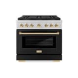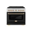 ZLINE - Autograph 36 in. Paramount Gas Range with 6 DuoPro Burners w/ Black Door & Gold Accents (PSGRZ-BLM-36-G) - Stainless Steel with Black Matte Door