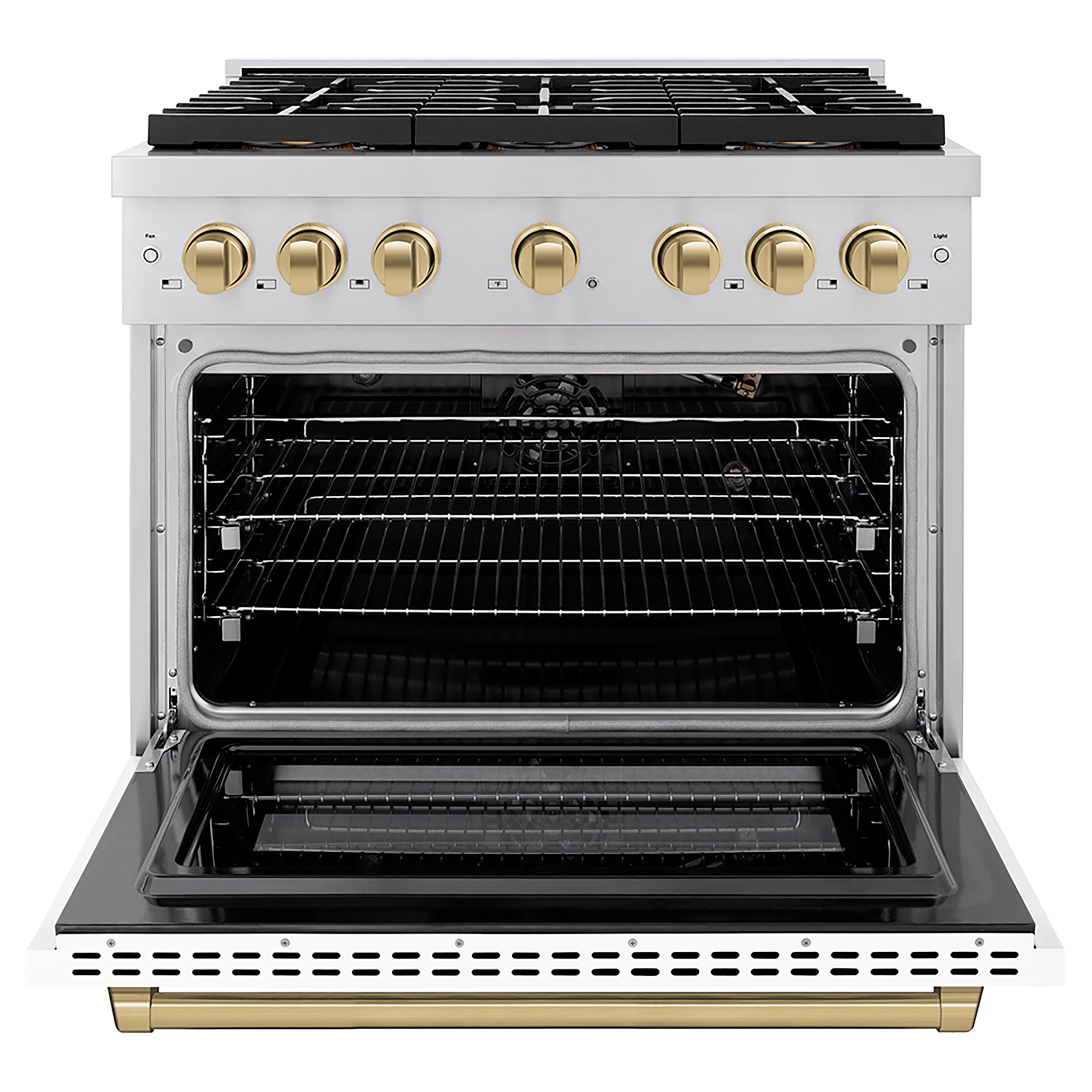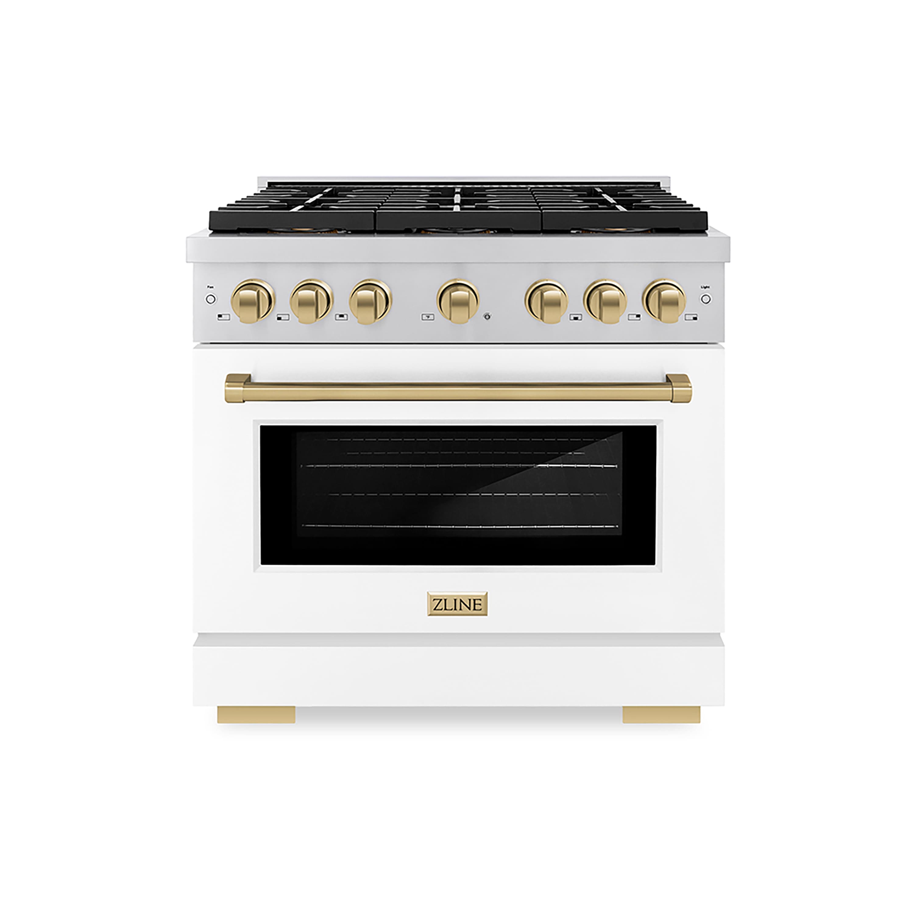 ZLINE - Autograph 36 in. Paramount Gas Range with 6 DuoPro Burners w/ White Door & Bronze Accents (PSGRZ-WM-36-CB) - Stainless Steel with White Matte Door