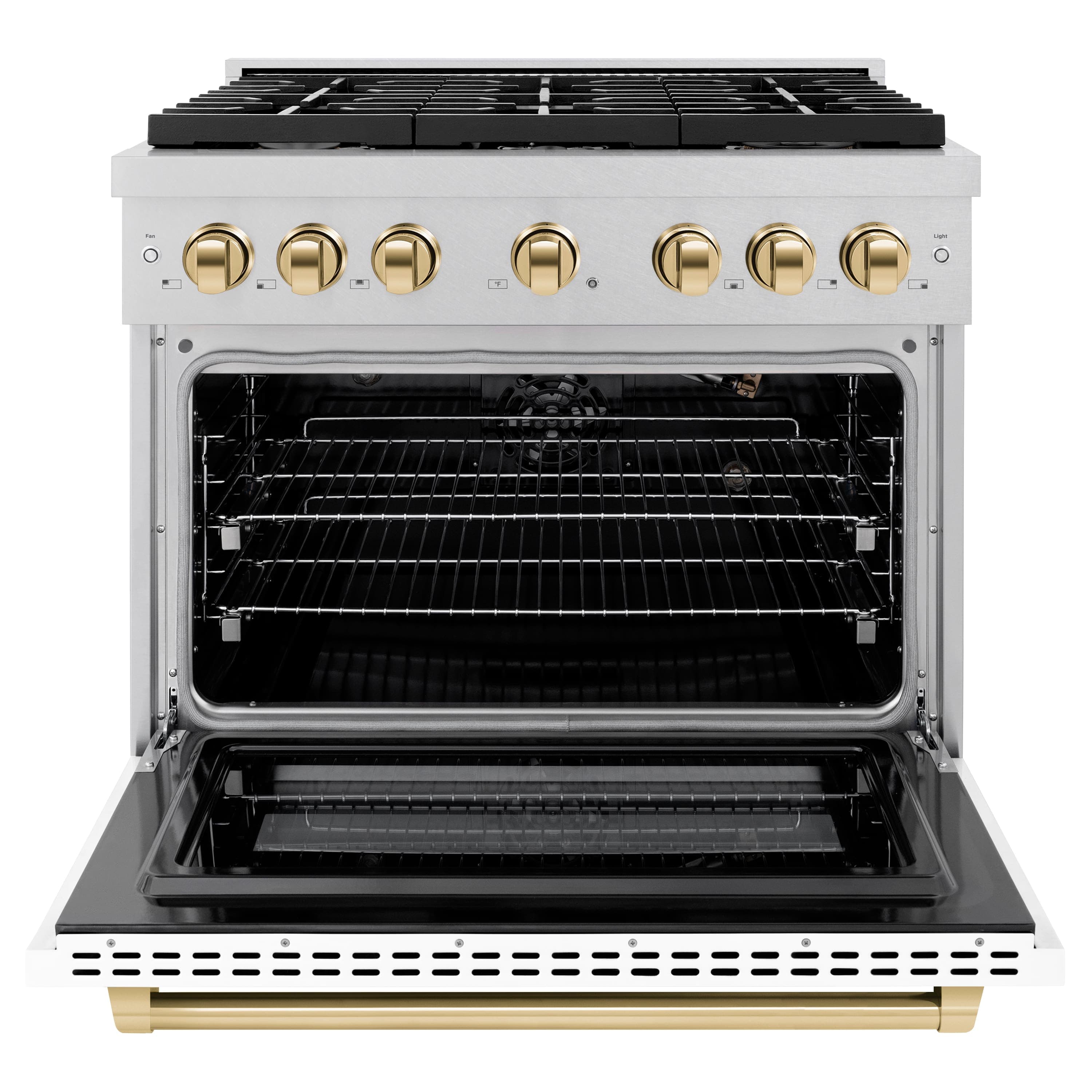 ZLINE - Autograph 36 in. Paramount Satin Steel Gas Range with Gold Accents (SGRSZ-WM-36-G) - White