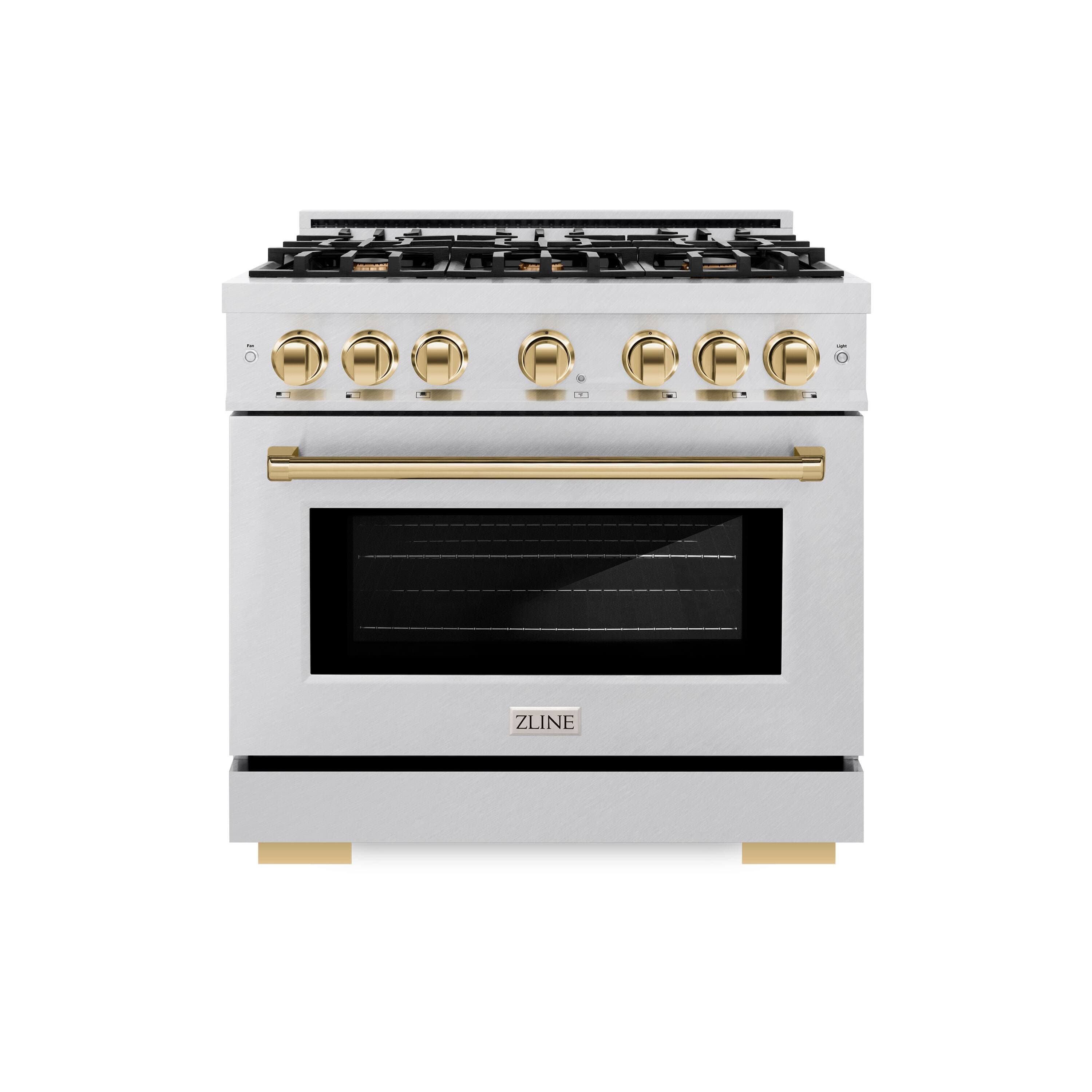 ZLINE - Autograph 36 in. Select Dual Fuel Satin Steel Range w/ 6 Burners & Gold Accents (HDRSZ-36-G) - Stainless Steel