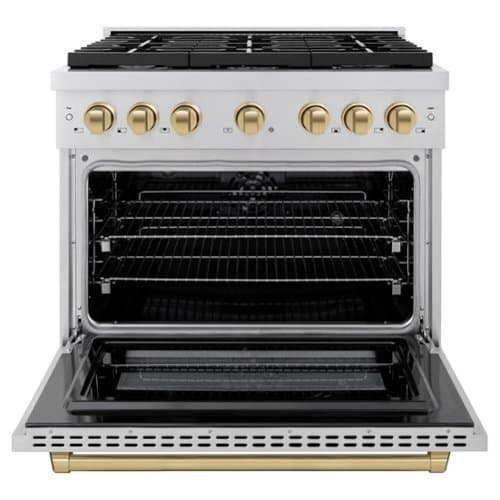 Luxury isn’t meant to be desired - it’s meant to be attainable. The ZLINE Autograph Edition 36 in. 5.2 cu. ft. Paramount Dual Fuel Range with 6 Burner Gas Cooktop and Electric Convection Oven in Stainless Steel with Champagne Bronze Accents (SDRZ-36-CB) combines the versatility of a gas cooktop with 6 Italian-made auto-reignition burners, an electric convection oven with digital thermostat technology, enhanced cast iron grates, a Horizon oven door window design, and elegant champagne bronze knobs and handle allowing you to master every meal. With a modern, timeless style and refined functionality, ZLINE Paramount Dual Fuel Ranges are masterfully crafted to deliver an elevated culinary experience.