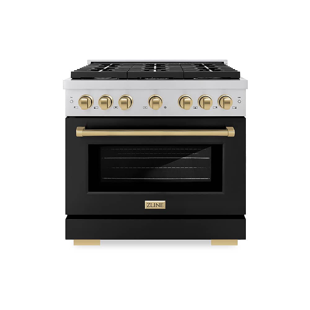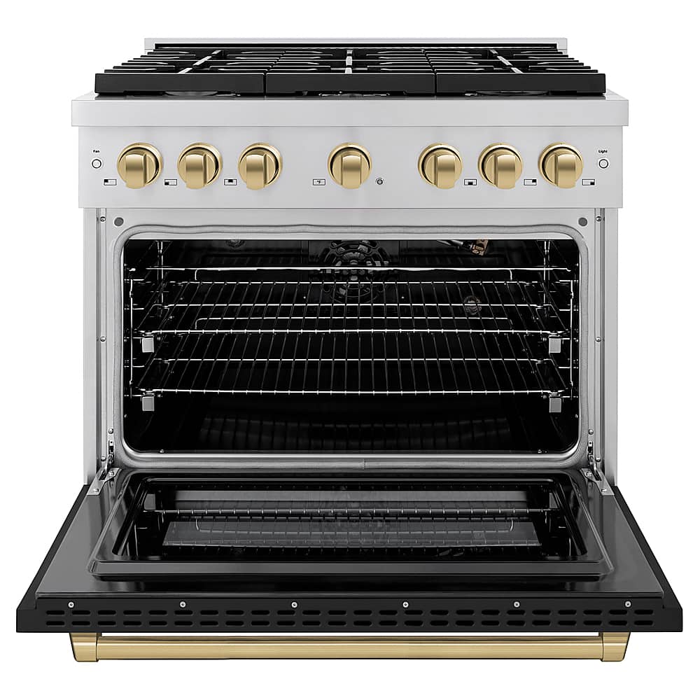 Luxury isn’t meant to be desired - it’s meant to be attainable. The ZLINE Autograph Edition 36 in. 5.2 cu. ft. Paramount Gas Range with 6 Burner Cooktop and Convection Gas Oven in Stainless Steel with Black Matte Door and Champagne Bronze Accents (SGRZ-BLM-36-CB) features a versatile gas cooktop with 6 Italian-made auto-reignition burners, a high-performing gas convection oven, enhanced cast iron grates, a beautiful black matte door with a Horizon window design, and elegant champagne bronze knobs and handle allowing you to master every meal. With a modern, timeless style and refined functionality, ZLINE Paramount Gas Ranges are masterfully crafted to deliver an elevated culinary experience.