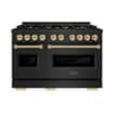 ZLINE - Autograph 48" Classic Dual Fuel Black Stainless Range w/ Gold Accents (CDRBZ-48-G) - Black Stainless Steel