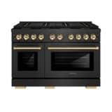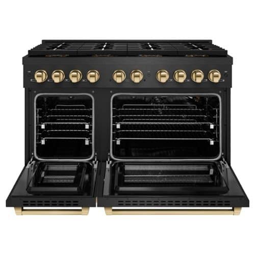 ZLINE - Autograph 48 in. 6.7 cu. ft. Double Oven Freestanding DuoPro Gas Range in Black Satin Stainless Steel and Gold Accents - Black Satin Stainless Steel