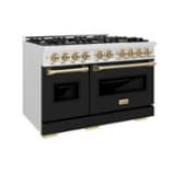 ZLINE - Autograph 48 in. 6.7 cu. ft. Freestanding Classic Satin Steel Gas Range w/ Black Doors & Bronze Accents - Black Matte