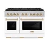 ZLINE - Autograph 48 in. 6.7 cu. ft. Freestanding Paramount Dual Fuel DuoPro Range in Satin Steel w/ White & Bronze Accents - White Matte