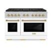 ZLINE - Autograph 48 in. 6.7 cu. ft. Freestanding Paramount Dual Fuel DuoPro Range in Satin Steel w/ White & Gold Accents - White Matte