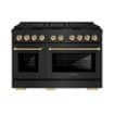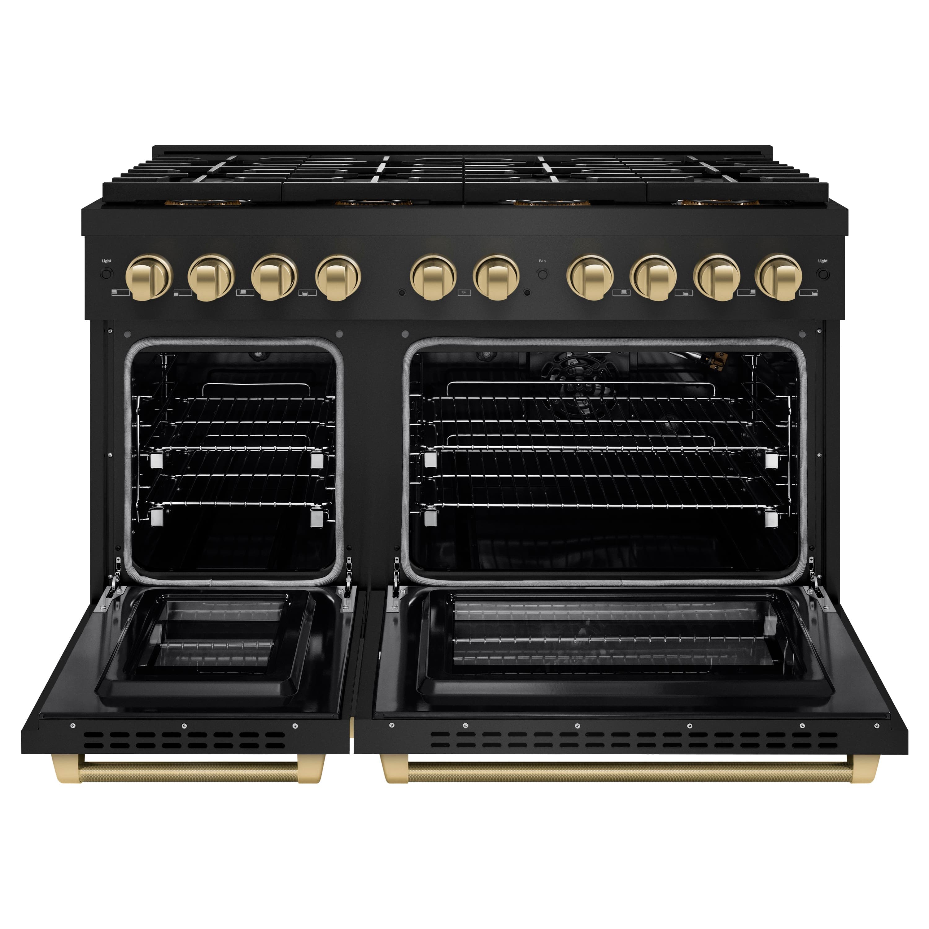 ZLINE - Autograph 48 in. 6.7 Cu. Ft. Freestanding Paramount DuoPro Gas Range in Black Steel with Champagne Bronze Helix Handles - Black Stainless Steel