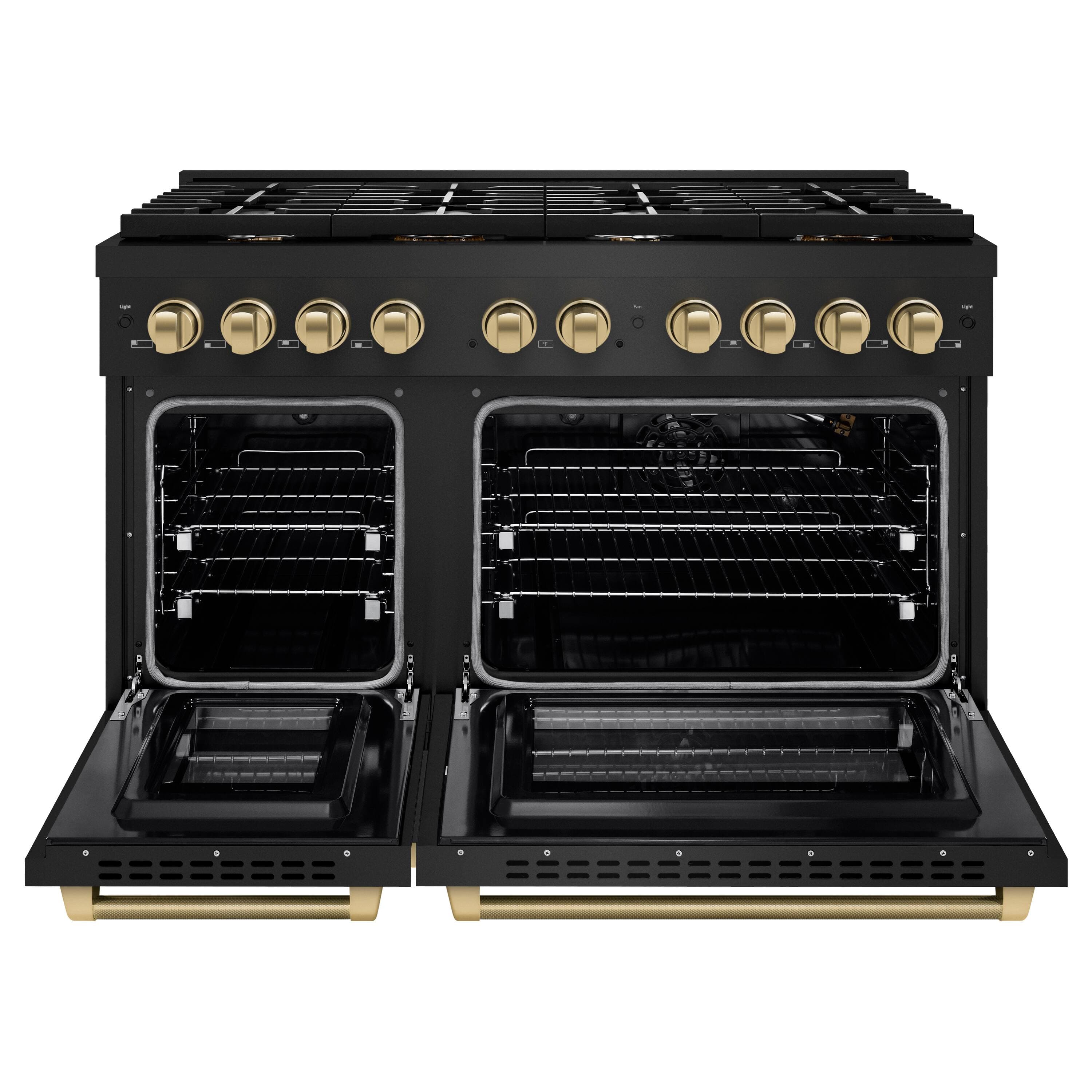 Luxury isn’t meant to be left desired—it’s meant to be attainable. The ZLINE Autograph Edition 48 in. 6.7 cu. ft. Paramount Double Oven Gas Range with 8 Burner Cooktop in Black Stainless Steel and Champagne Bronze Helix Handles and Knob Accents (SGRBZ-48-KCB) features a versatile gas cooktop with 8 Italian-made auto-reignition burners, a large high-performing gas convection oven, a small baking oven, enhanced cast iron grates, and Horizon oven door window designs allowing you to master every meal. With a modern, timeless style and refined functionality, ZLINE Paramount Gas Ranges are masterfully crafted to deliver an elevated culinary experience.