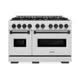 Luxury isn’t meant to be left desired — it’s meant to be attainable. The ZLINE Autograph Edition 48 in. 6.7 cu. ft. Classic Double Oven Dual Fuel Range with 8 Burner Gas Cooktop in Satin Stainless Steel and Matte Black Accents (CDRSZ-48-MB) combines the elegance of a hand-finished porcelain gas cooktop with 8 Italian-made auto-reignition burners, a large electric convection oven with an energy-efficient cooling fan to ensure quiet operation, a small bake-and-broil oven, Landscape oven door window designs, and stunning matte black knobs and handles allowing you to master every meal. With a modern, timeless style and refined functionality, ZLINE Classic Dual Fuel Ranges are masterfully crafted to deliver an elevated culinary experience.