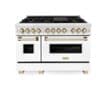 ZLINE - Autograph 48 in. Legacy Dual Fuel Range in Satin Steel w/ White & Gold Accents (RASZ-WM-48-G) - Multicolor