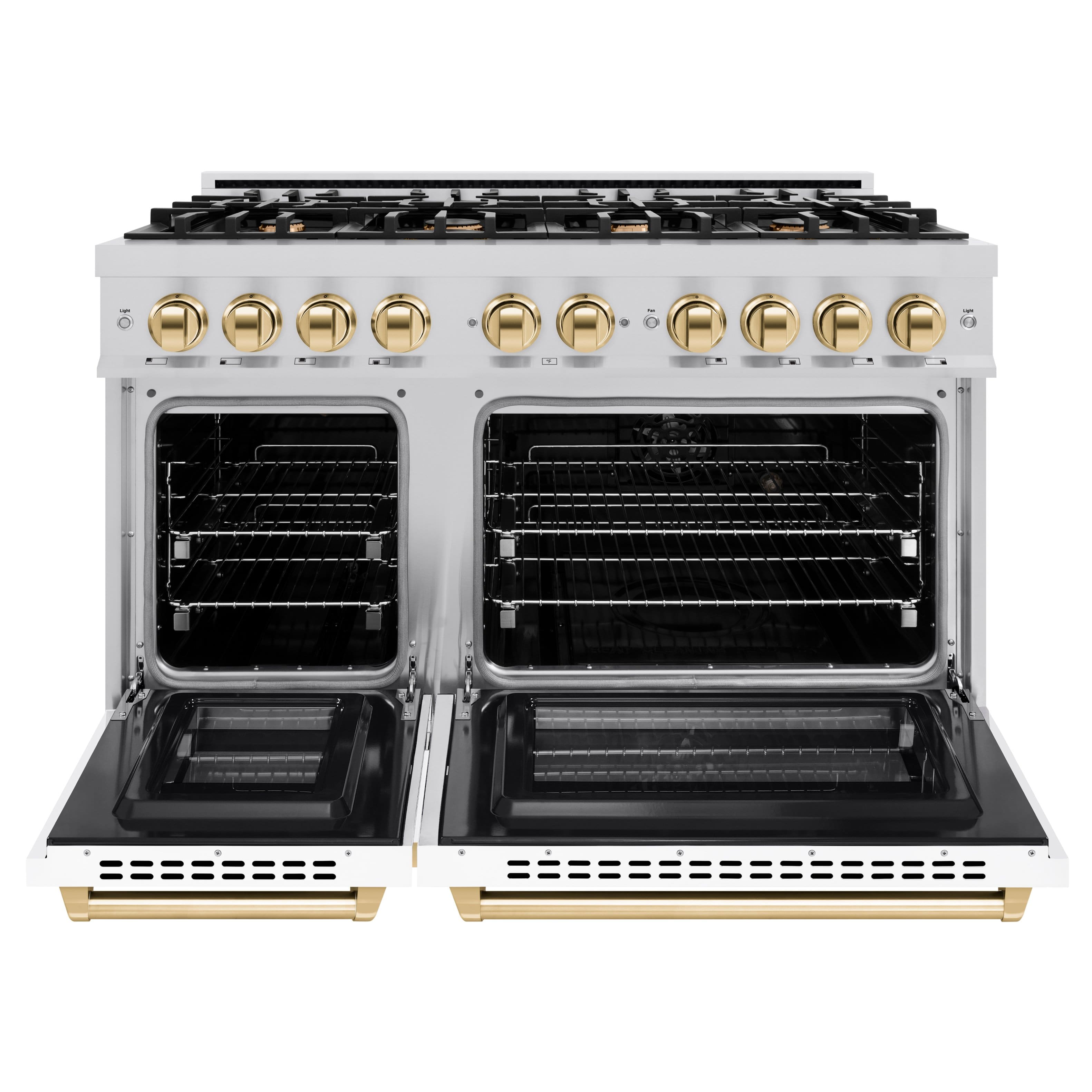ZLINE - Autograph 48 in. Select Dual Fuel Satin Steel Range w/ White & Gold Accents (HDRSZ-WM-48-G) - White Matte