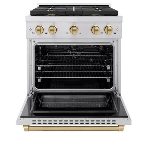 Luxury isn’t meant to be desired - it’s meant to be attainable. The ZLINE Autograph Edition 30 in. 4.2 cu. ft. Paramount Gas Range with 4 Burner Cooktop and Convection Gas Oven in Stainless Steel and Champagne Bronze Accents (SGRZ-30-CB) features a versatile gas cooktop with 4 Italian-made auto-reignition burners, a high-performing gas convection oven, enhanced cast iron grates, a Horizon oven door window design, and elegant champagne bronze knobs and handle allowing you to master every meal. With a modern, timeless style and refined functionality, ZLINE Paramount Gas Ranges are masterfully crafted to deliver an elevated culinary experience.