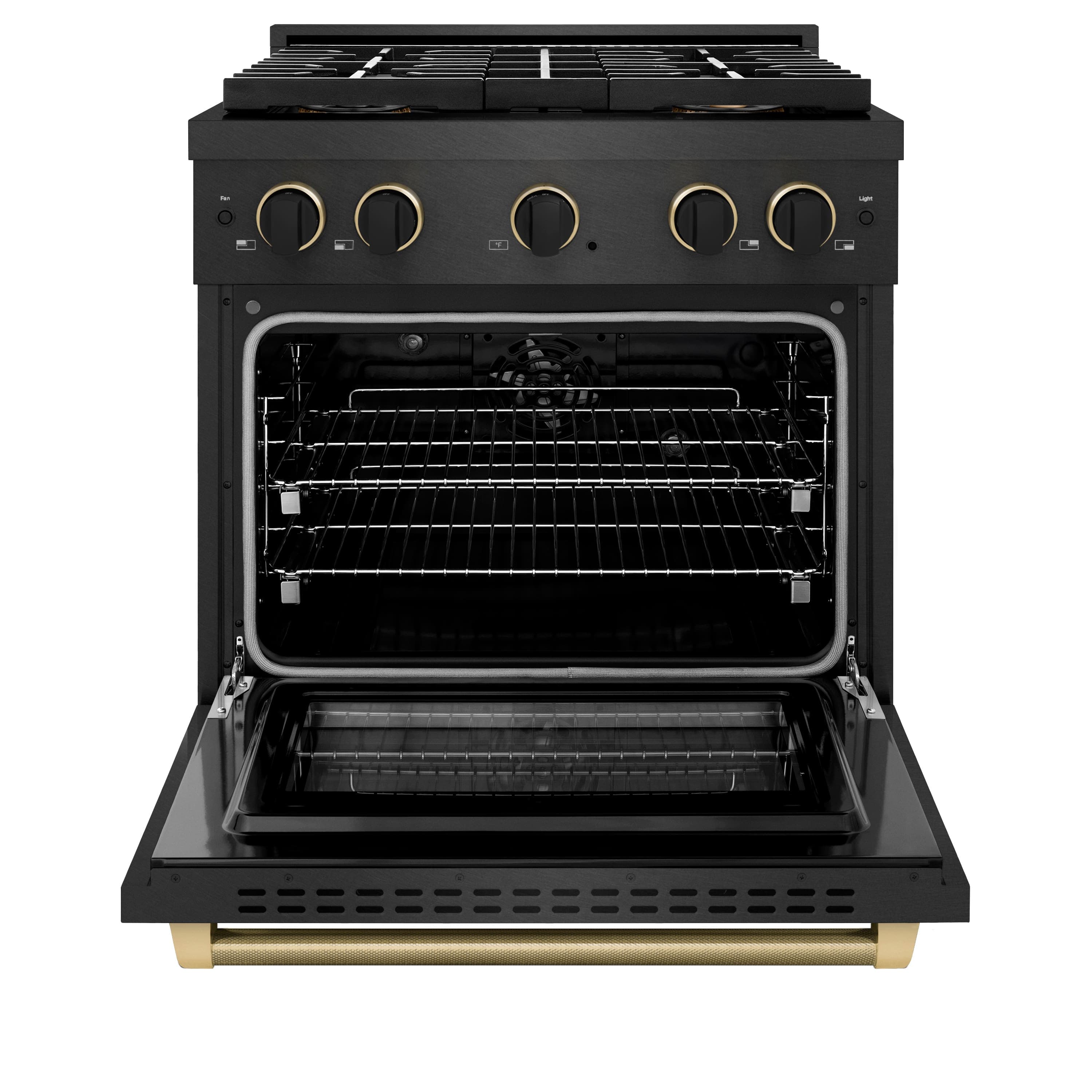Luxury isn’t meant to be left desired—it’s meant to be attainable. The ZLINE Designer Collection 30 in. 4.2 cu. ft. Paramount Dual Fuel Range with 4 Burner DuoPro™ Cooktop and Electric Convection Oven in Black Satin Stainless Steel with Matte Black and Champagne Bronze Accents (PSDRBSZ-30-MBCB) features a high-powered gas cooktop with 4 hand-crafted Italian dual-ring brass burners and a versatile electric convection oven allowing you to master every meal. With ZLINE DuoPro™, every burner brings the performance you need—wherever you need it.