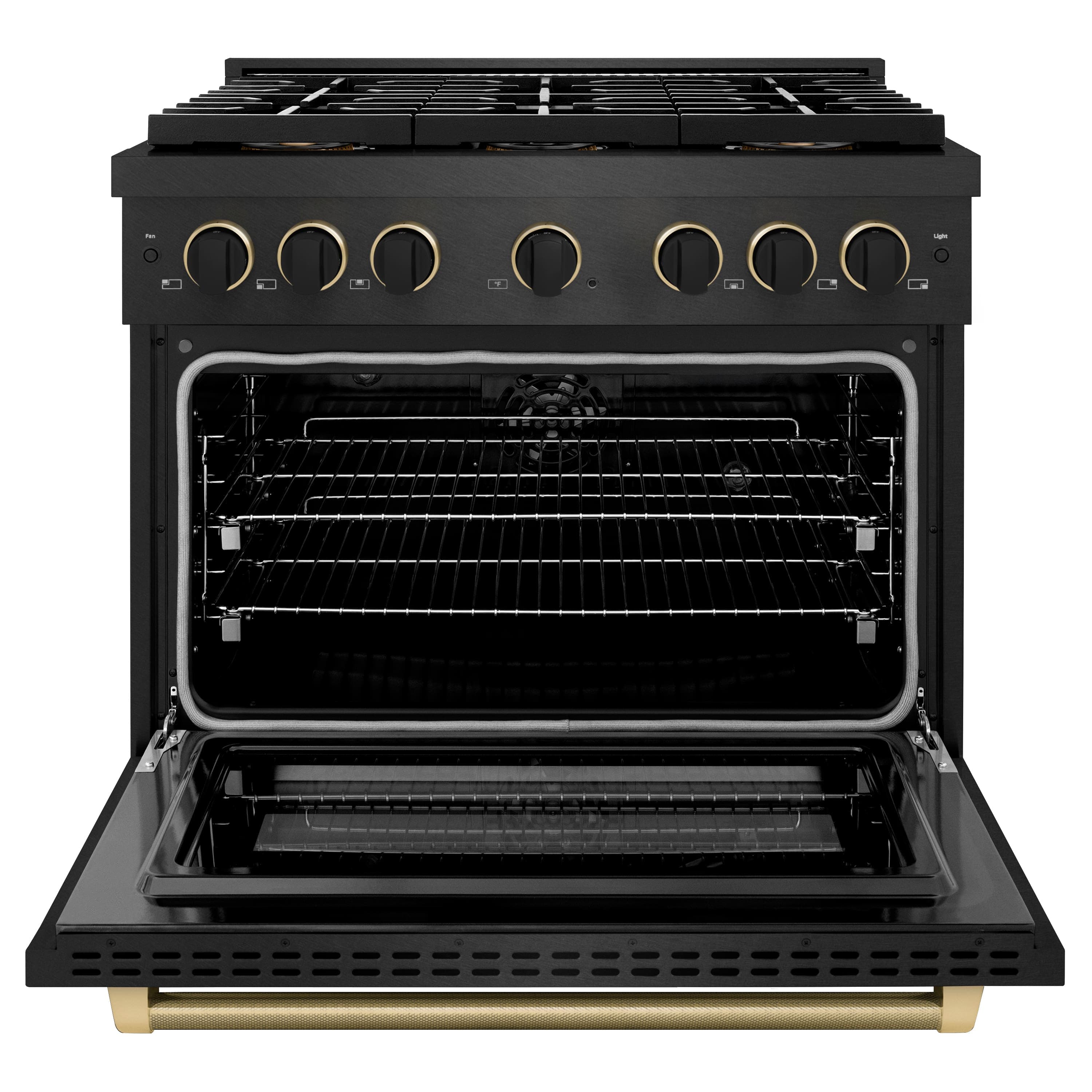 ZLINE - Designer 36 in. 5.2 cu. ft. Freestanding DuoPro Dual Fuel Range in Black Satin Steel with Black and Bronze Accents+M9 - Black Satin Stainless Steel