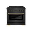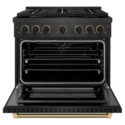 Luxury isn’t meant to be left desired—it’s meant to be attainable. The ZLINE Designer Collection 36 in. 5.2 cu. ft. Paramount Dual Fuel Range with 6 Burner Gas Cooktop and Electric Convection Oven in Black Satin Stainless Steel with Matte Black and Champagne Bronze Accents (SDRBSZ-36-MBCB) combines the versatility of a gas cooktop with 6 Italian-made auto-reignition burners and a high-performing electric convection oven with digital thermostat technology allowing you to master every meal and deliver an elevated culinary experience.