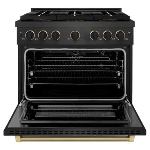 Luxury isn’t meant to be left desired—it’s meant to be attainable. The ZLINE Designer Collection 36 in. 5.2 cu. ft. Paramount Gas Range with 6 Burner DuoPro™ Cooktop and Convection Gas Oven in Black Satin Stainless Steel with Matte Black and Champagne Bronze Accents (PSGRBSZ-36-MBCB) features a high-powered gas cooktop with 6 hand-crafted Italian dual-ring brass burners and a versatile gas convection oven allowing you to master every meal. With ZLINE DuoPro™, every burner brings the performance you need—wherever you need it.