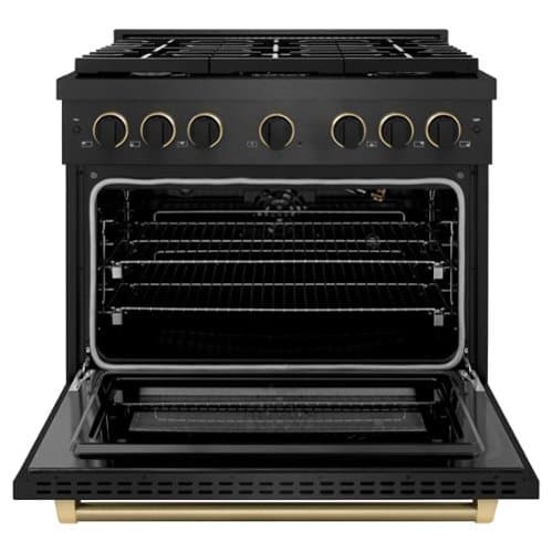 Luxury isn’t meant to be left desired—it’s meant to be attainable. The ZLINE Designer Collection 36 in. 5.2 cu. ft. Paramount Gas Range with 6 Burner Cooktop and Convection Gas Oven in Black Satin Stainless Steel with Matte Black and Champagne Bronze Accents (SGRBSZ-36-MBCB) combines the versatility of a gas cooktop with 6 Italian-made auto-reignition burners and a high-performing gas convection oven allowing you to master every meal and deliver an elevated culinary experience.