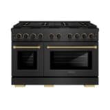 Luxury isn’t meant to be left desired—it’s meant to be attainable. The ZLINE Designer Collection 48 in. 6.7 cu. ft. Paramount Dual Fuel Range with 8 Burner DuoPro™ Cooktop and Dual Ovens in Black Satin Stainless Steel with Matte Black and Champagne Bronze Accents (PSDRBSZ-48-MBCB) features a high-powered gas cooktop with 8 hand-crafted Italian dual-ring brass burners and a versatile electric convection oven allowing you to master every meal. With ZLINE DuoPro™, every burner brings the performance you need—wherever you need it.