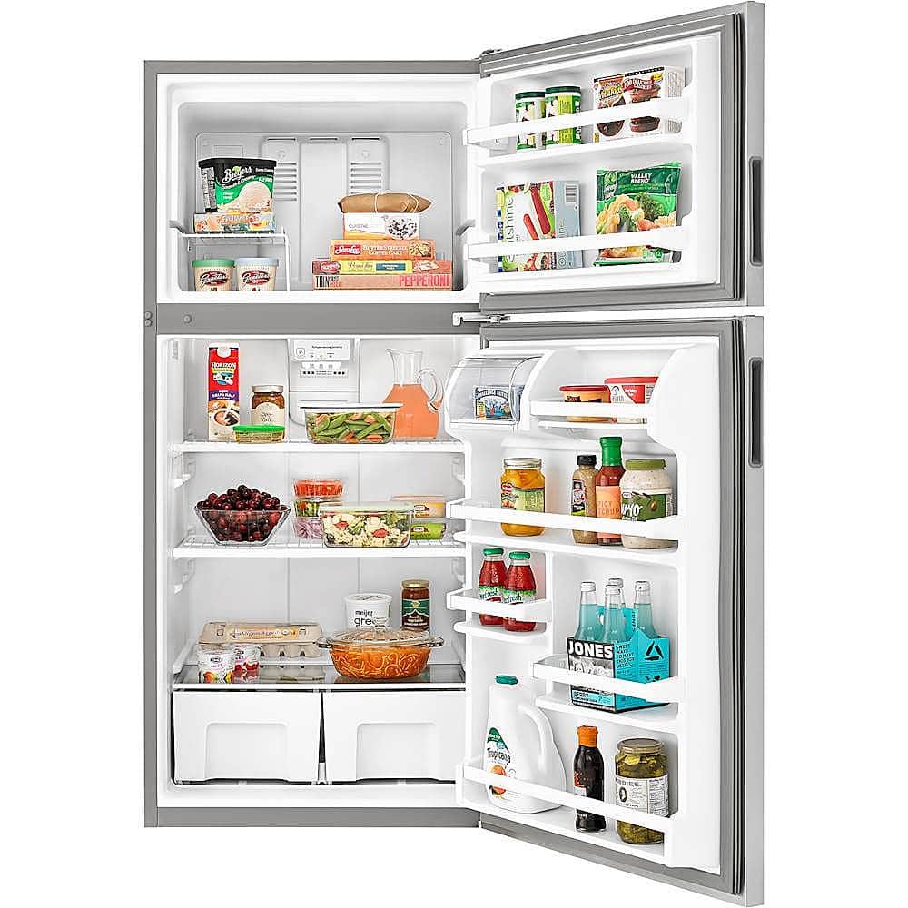 Maximize kitchen storage with this 30-inch Amana refrigerator. It has an 18 cu. ft. capacity to hold food for a medium-sized household, and the flip-up shelf lets you stock tall wine bottles and other beverages within easy reach. This black Amana refrigerator has humidity-controlled crisper drawers to preserve fruits and vegetables.