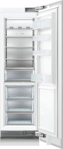 Integrated Column Refrigeration gives you the freedom to mix and match refrigerators and freezers based on your needs – or install separately. They can be customized with your kitchen cabinetry for a seamless look, or finished with one of our stainless steel door panels. The premium design and quality finish includes a white or stainless steel interior lining, as well as full-extension metal shelf runners for easy access and robust glass shelving.