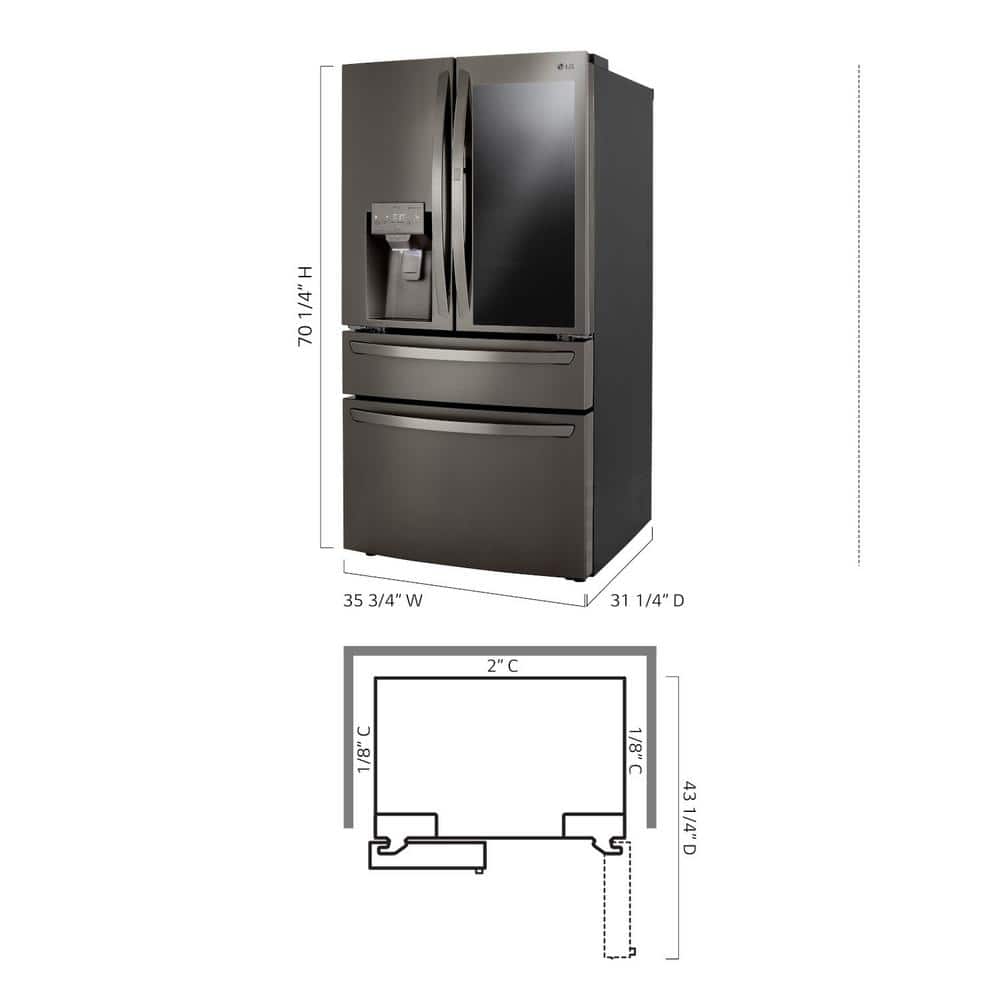 LG 23 cu. ft. 4-Door French Door Refrigerator w/ InstaView, Craft Ice in PrintProof Black Stainless Steel, Counter Depth