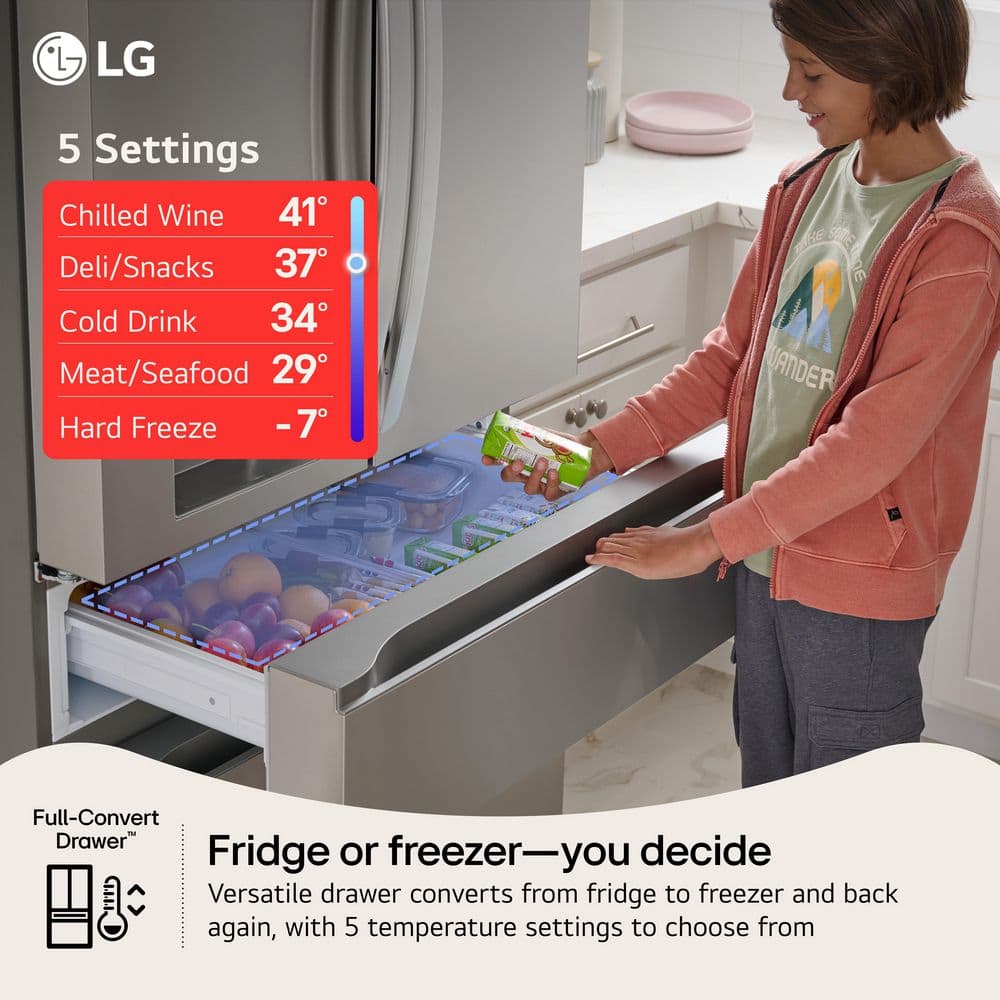 This 4-door Standard-Depth MAX refrigerator doesn't just give you space-it allows you to make a design statement and stand out from the crowd. Convert the versatile Full-Convert Drawer into a fridge or freezer, or choose from 5 temperature settings, with the touch of a button to provide optimal storage for a range of fresh or frozen items. Enjoy our Mini Craft Ice-right from the dispenser-to MAX out you chill.