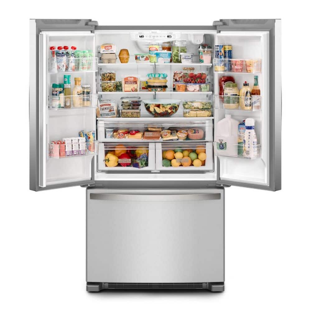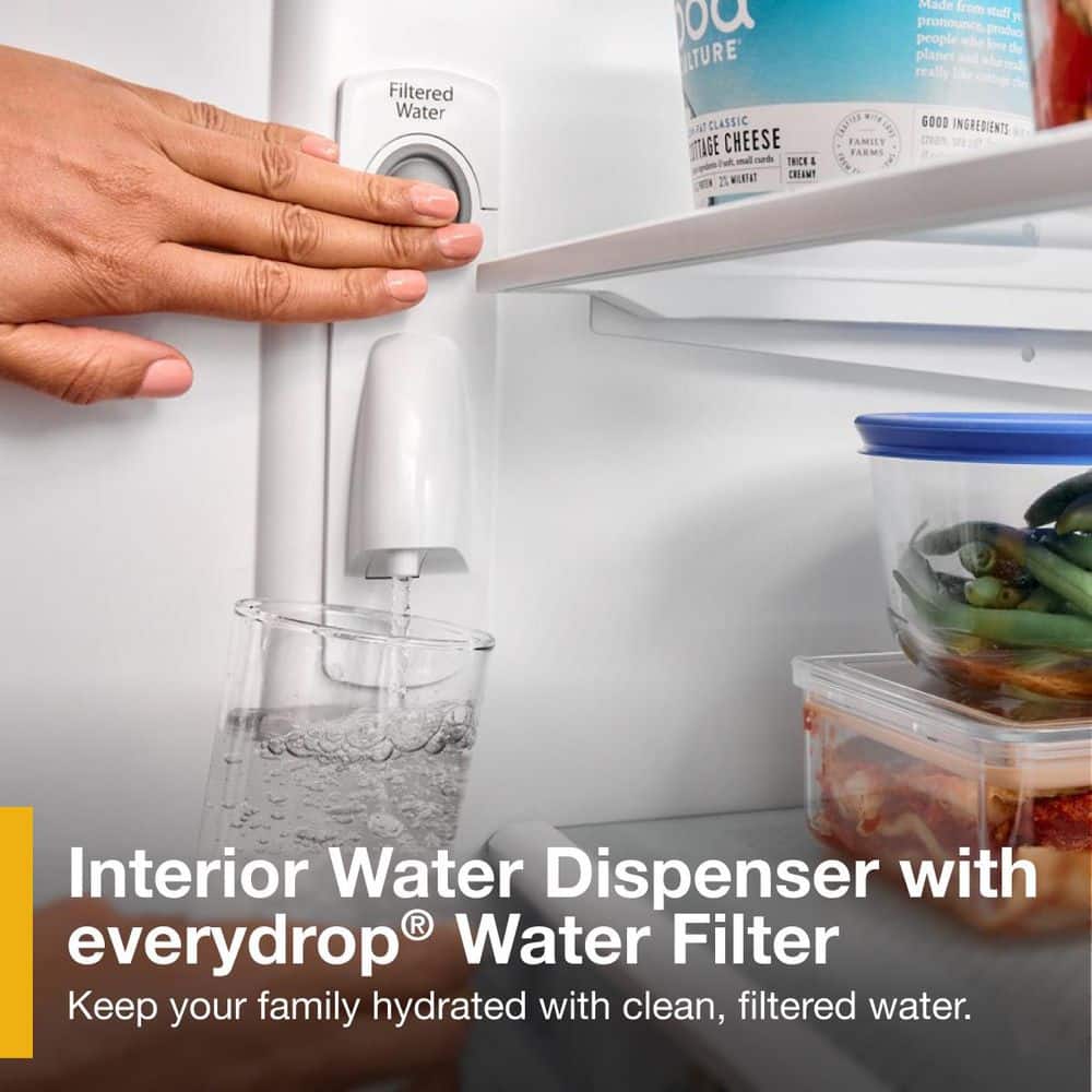 This French door refrigerator with an internal water dispenser gives you the storage you need with the flexibility you want. With features like an elevated deli drawer, spend less time looking and more time enjoying your deli essentials. The interior water dispenser with whirlpool water filtration offers on-demand filtration so even clean water is easy to find. Get that perfect built-in look while keeping everyday items in sight thanks to counter depth design with easy-reach shelves.