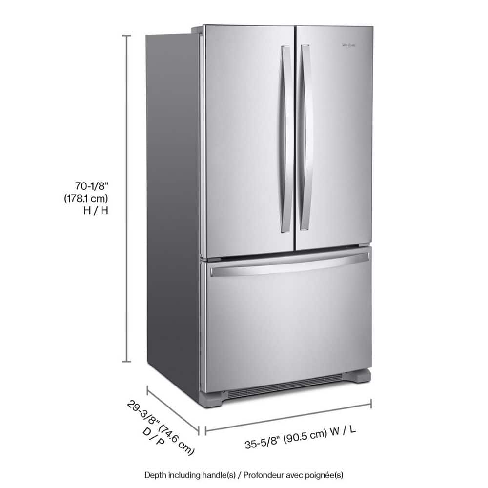 Whirlpool 35 in. 20 Cu. Ft. Counter-Depth French Door Bottom Mount Refrigerator in Stainless Steel with Elevated Deli Drawer