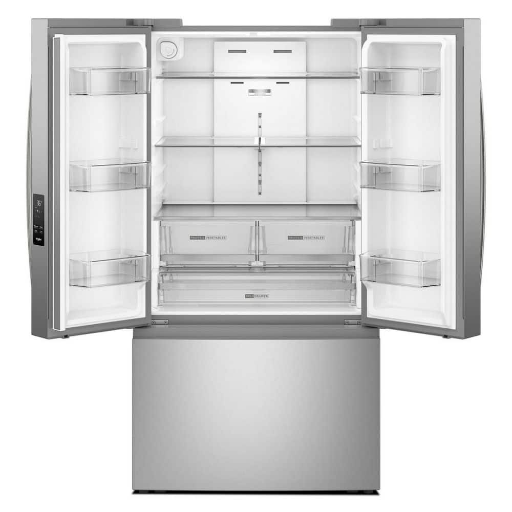 Whirlpool 36 in. 31 cu. ft. Standard Depth French Door Refrigerator in Fingerprint Resist Stainless Finish w/ Interior Dispenser