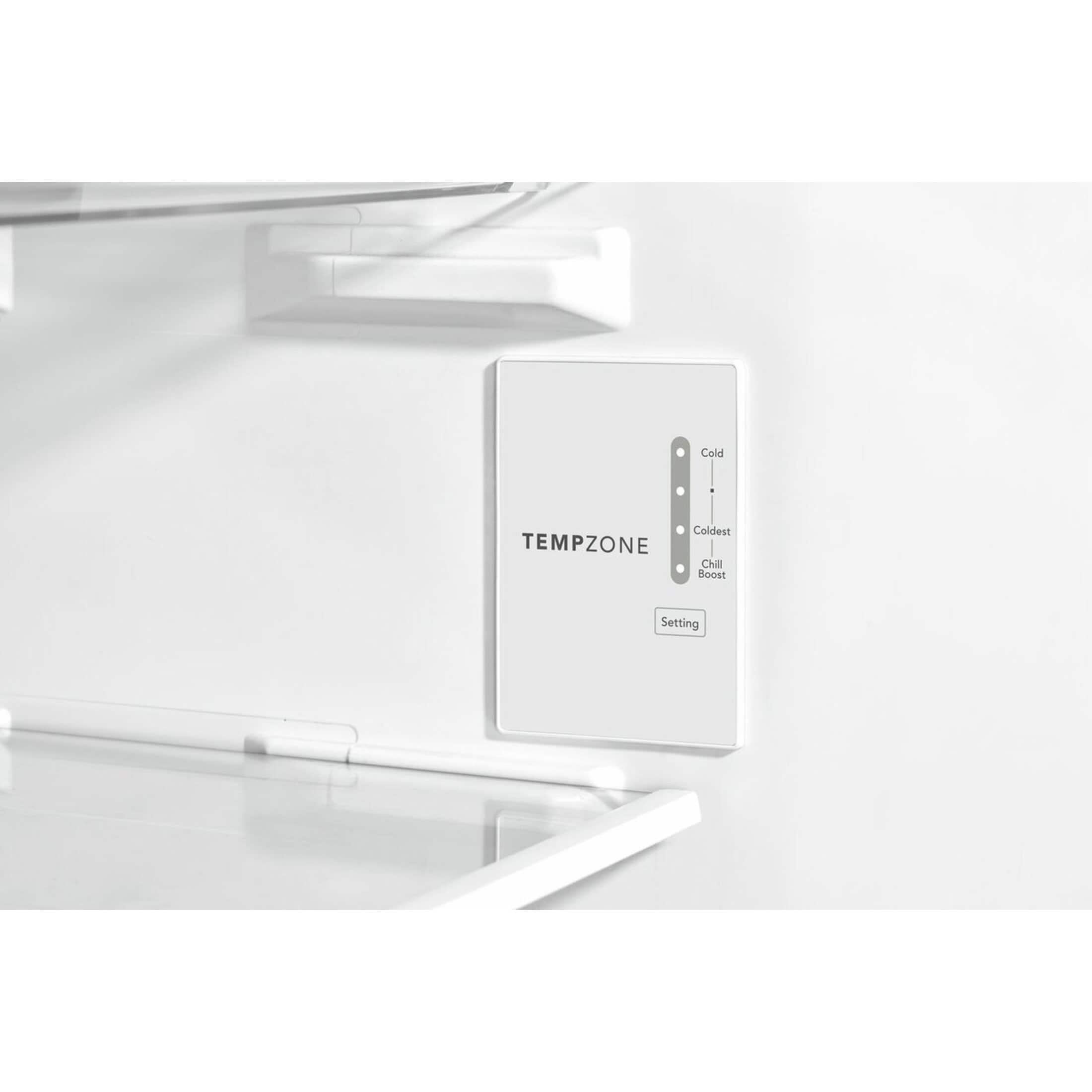 This Frigidaire 19 cu. ft. top freezer refrigerator includes spacious interior storage options designed for busy families, including generous door bins, adjustable full-width glass shelving, and a sliding deli drawer. Our humidity-controlled crispers keep produce fresh for longer, allowing you to waste less and save money.