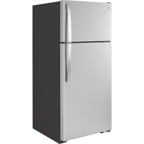 GE - 16.6 Cu. Ft. Top-Freezer Refrigerator with Edge-to-Edge Glass Shelves - Stainless Steel