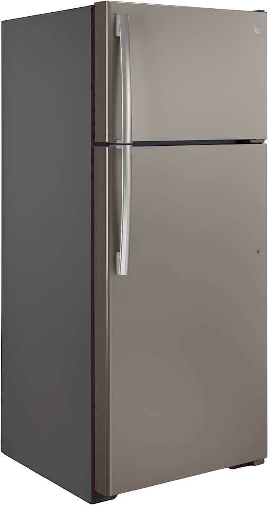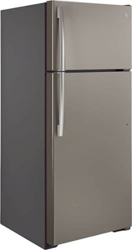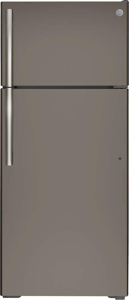 GE - 17.5 Cu. Ft. Top-Freezer Refrigerator with Edge-to-Edge Glass Shelves - Slate