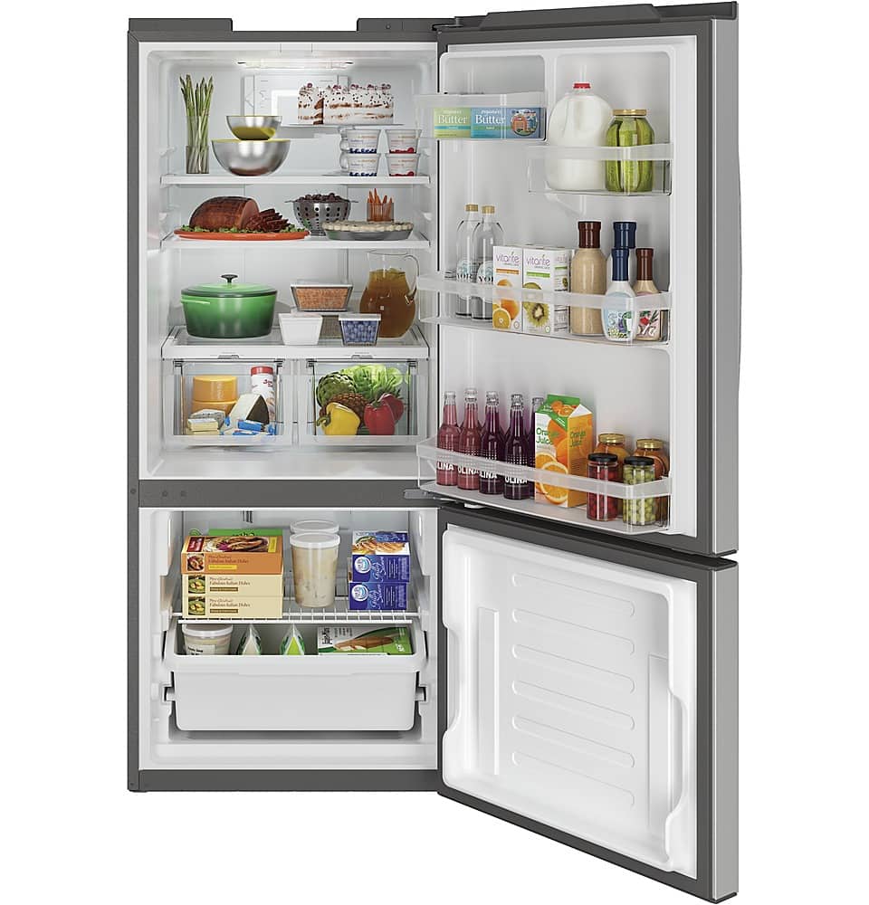 GE - 21.0 Cu. Ft. Bottom-Freezer Refrigerator with LED Interior Lighting - Stainless Steel