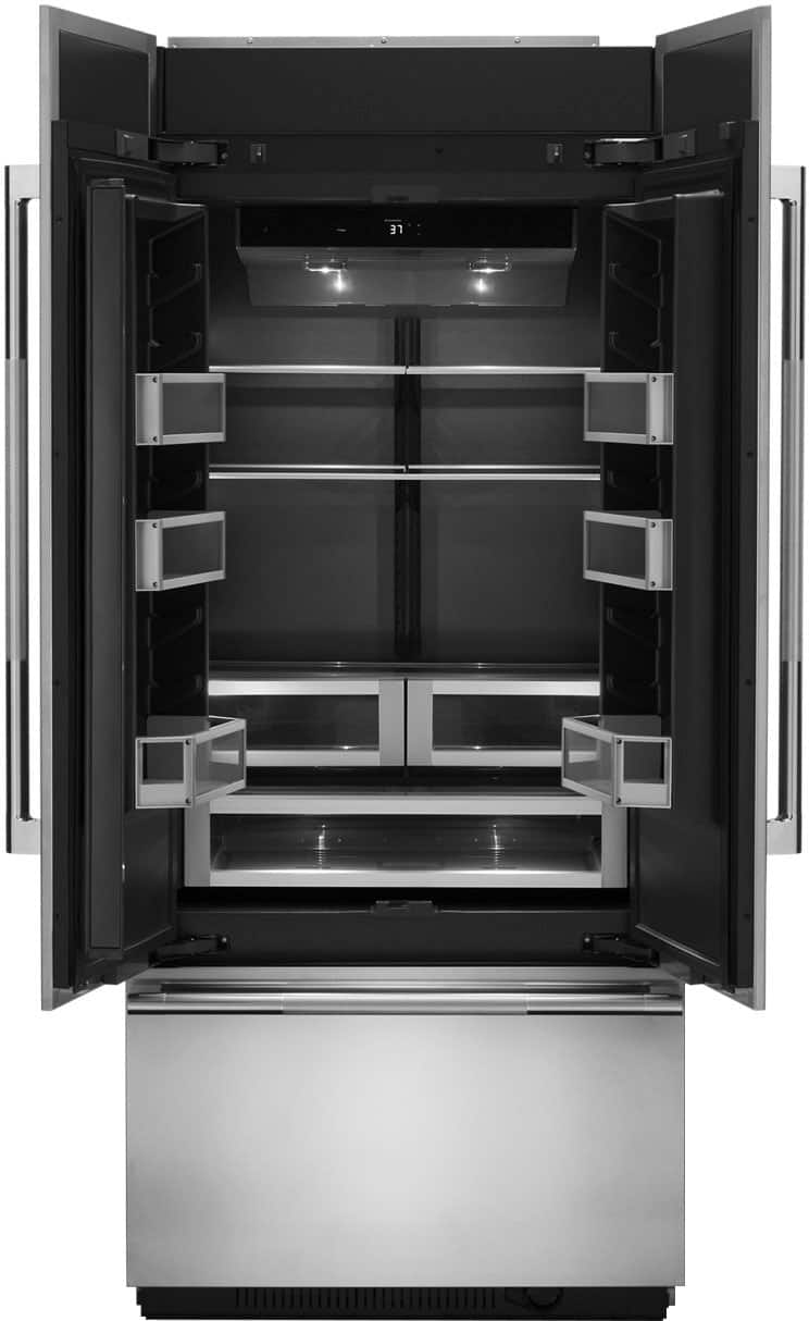 Featuring the exclusive Jenn-Air Obsidian interior, this bottom-freezer refrigerator offers a fully flush, fully integrated design, distinct fresh- and frozen-food climates, and Produce Preserver to help keep fruits and vegetables at optimum freshness.