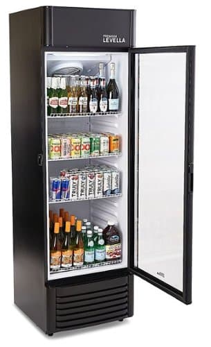 PREMIUM LEVELLA'S 12.5 cu ft single door display refrigerator is the perfect upgrade for businesses, offices, cafes, and homes. The Double-layer hollow glass door keeps the interior at the perfect temperature and eliminates condensation. The removable/adjustable shelves accommodate a variety of beverages such as water, soda, juice, milk, beer, and wine. The single glass door allows users to beautifully display their products. Compared to standard solid door refrigerators, users can view the contents inside the refrigerator without letting the cold out. Premium Levella knows that keeping the cold in, keeps more money in your pocket.
