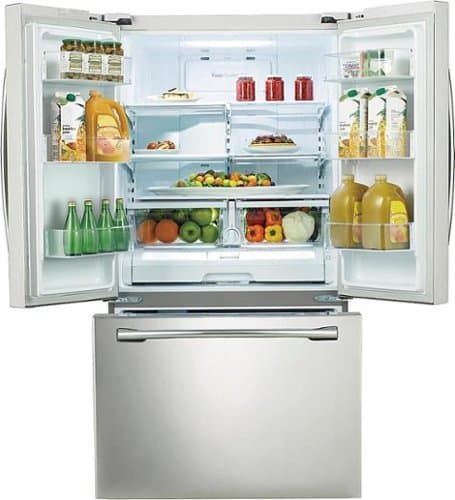 Add this sleek and spacious Samsung 25.5 cu. ft. french door refrigerator to your busy household. Control the settings exactly how you want in order to freeze and chill food fast. Plus, you'll have plenty of ways to organize ingredients, making it easier for everyone to grab and go. Get great-tasting, filtered water directly from your refrigerator. Spend less time and money buying bottled water.