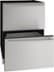 The U-Line 1 Class 24” Refrigerator Drawers store fresh produce, deli foods, pantry items, beverages, and more. This model is in an integrated drawer finishes that accept custom drawer panels to match your surrounding cabinetry. Designed to preserve your favorite ingredients, snacks, and beverages in two slide-out stainless steel drawers. U-Line's 1 Class installs beautifully into cabinetry, or in freestanding applications.
