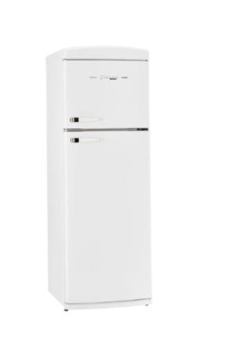 Timeless style meets efficiency in our 11 cu.ft. Retro top-mount, Energy Star, frost-free refrigerator. Featuring chrome accents, LED display, adjustable glass shelves, frost-free cooling and Super Freeze Mode, it blends style with performance. Stay organized with a wine rack, ice tray, and humidity control crisper while the digital control panel and door alarm ensure convenience and peace of mind.