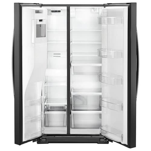 Stock up on groceries with this Whirlpool side-by-side refrigerator. Its 20.59 cu. ft. capacity includes adjustable shelves and door bins for flexible storage, and its convenient external dispenser provides filtered water and ice for beverages. The humidity-controlled crisper drawers in this 36-inch Whirlpool side-by-side refrigerator keep fruits and vegetables fresh longer.
