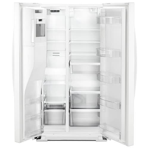 Store more frozen foods with this 21.0 cu. ft. Whirlpool side-by-side refrigerator. Its in-door ice bin leaves room for more freezer storage, and its external water and ice dispenser lets you enjoy beverages without opening the door. The Accu-Chill technology in this 36-inch Whirlpool side-by-side refrigerator adapts automatically to achieve the ideal temperature.