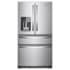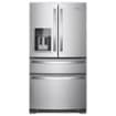 Create a modern, functional kitchen with this large Whirlpool French door refrigerator. Four adjustable glass shelves let you customize the inside of the unit to suit your needs, while crisper drawers keep produce items fresh. Conveniently finished with fingerprint-resistant stainless steel, this 24.5 cu. ft. Whirlpool French door refrigerator comes with dual-zone temperature controls for customized performance.