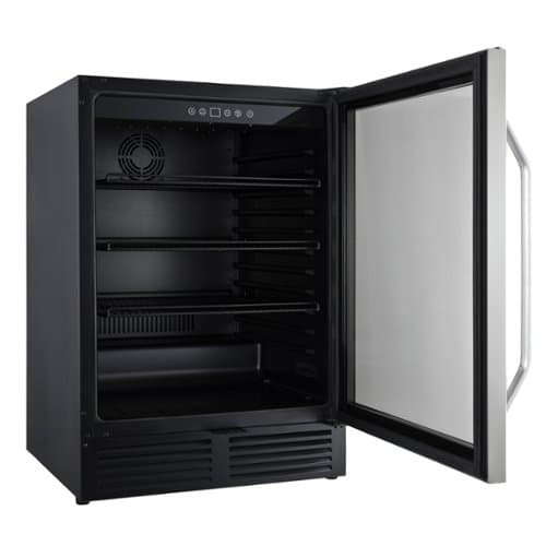 Keep your favorite drinks close by in this compact, 5.0 cubic feet beverage center with stainless steel frame and double pane tempered glass door from Avanti. The perfect lockable mini fridge for the office, dorm, man cave, she-shed, bar, bedroom, or anywhere you need a little extra refrigerator cooling and storage space. Easily view your drink choices through the glass door. Use the adjustable, removable shelving to arrange drinks for easy access throughout the day. This compact fridge holds 130 12 oz. cans features automatic defrost, so your drinks stay perfectly chilled. Select the right settings at the touch of a button and monitor the temperature with the temperature monitoring LED electronic display.
