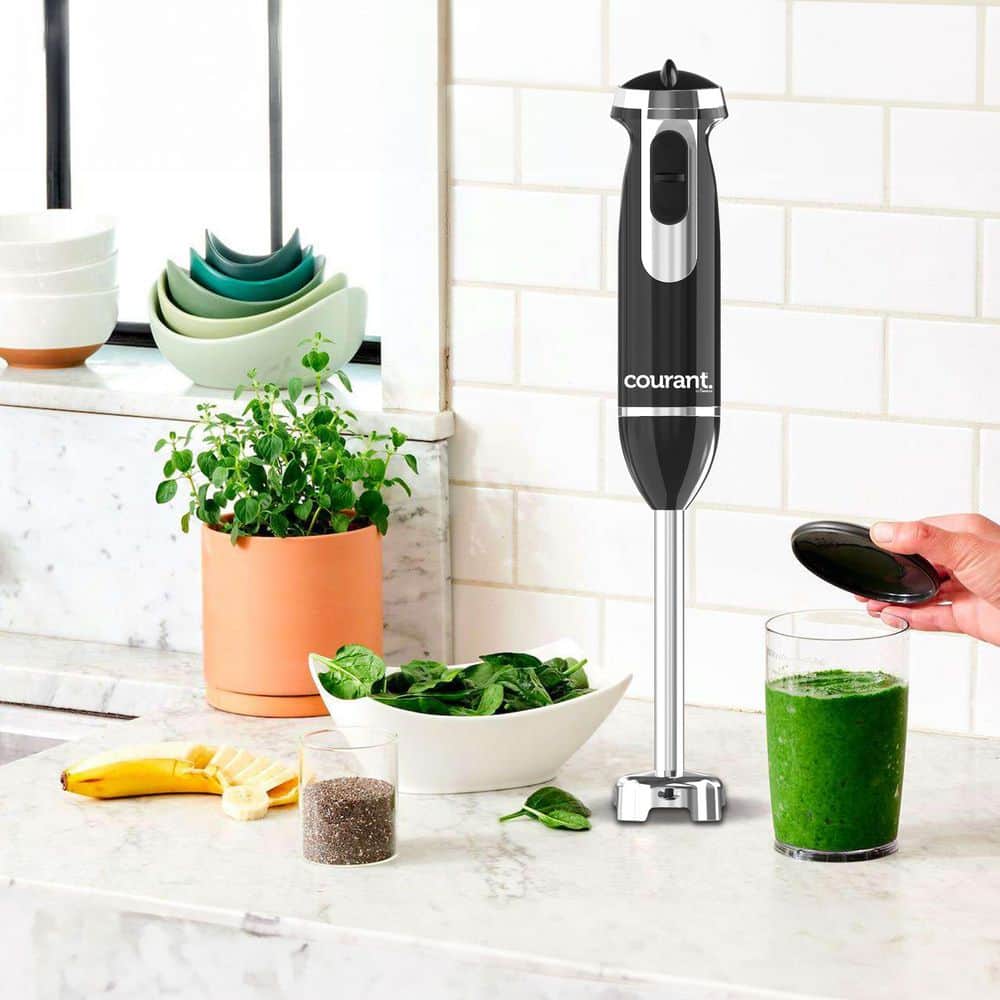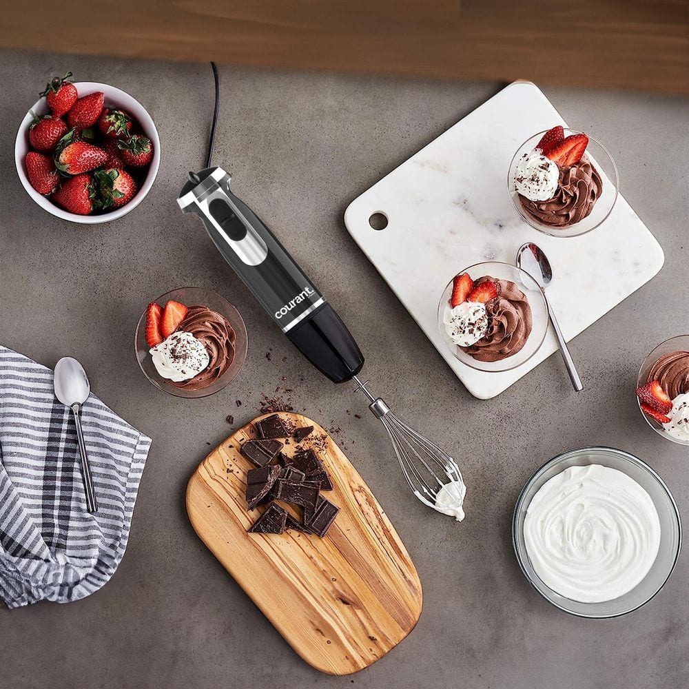 Courant 2-Speed Stainless Steel Immersion Blender with Whisk Attachment and 20 oz. Measuring Cup