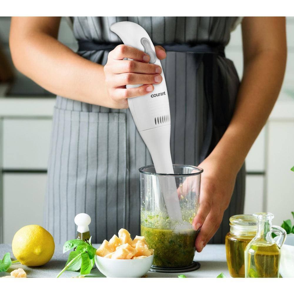 Courant 2-Speed White Immersion Blender Hand Mixer with 30 Oz. Measuring Cup