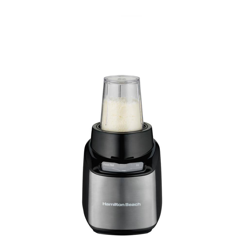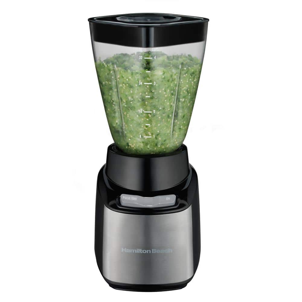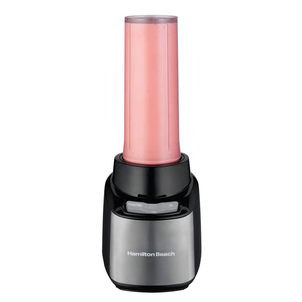Combining the practicality of a full-size blender with the convenience of a single-serve, the Hamilton Beach Stay or Go Blender fits your busy lifestyle. It can easily make smoothies or shakes and can also puree sauces or grind hard cheeses. With four containers included, this blender is the perfect size for every job. The 32 oz. jar is large enough to serve the family and two 16 oz. travel cups with drinking lids are just the right size for smoothies on the go. Additionally, the 8 oz. cup can be used for chopping or finely grinding and with the included shaker lid you can bring it to the table for serving. All of the included containers are made of shatterproof Tritan that is crystal clear, lightweight, dishwasher safe, and BPA-free. Add ingredients while blending using the removable filler cap on the 32 oz. jar and use the pulse button for greater control. Once this multi-tasking blender is in your kitchen, it will quickly become your go-to appliance for preparing many different things.