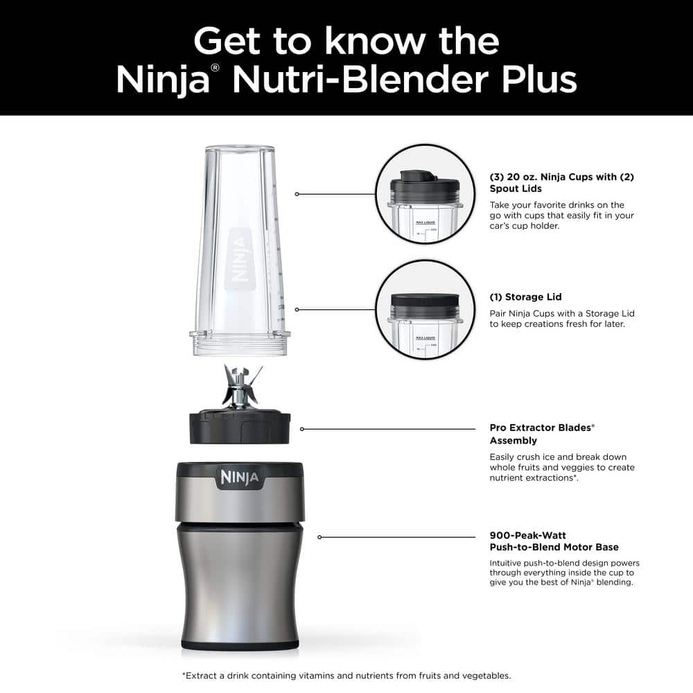 NINJA Nutri Blender Plus 20 oz. Single Speed Silver Countertop Blender
